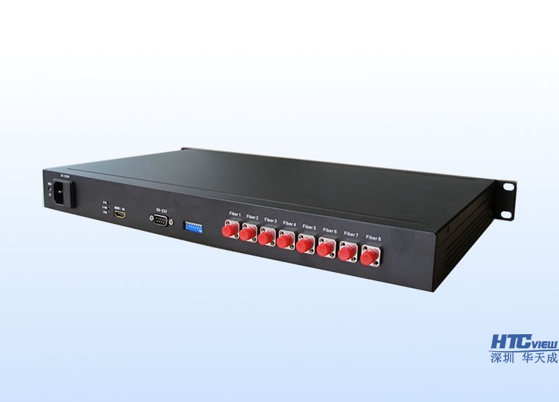 1分8单芯HDMI光端机产品由发送器和接收器组成,能通过单根光纤把计算机主机的HDMI音视频、RS232信号延长到远端,用户可以在远端实时查看收听到电脑主机的图像和声音;接收机输出两路HDMI信号,两路RS232信号,可同时连接两个大屏显示,分辨率最高支持到1920×1080@60Hz,传输距离可达2公里(多模)/20公里(单模)。